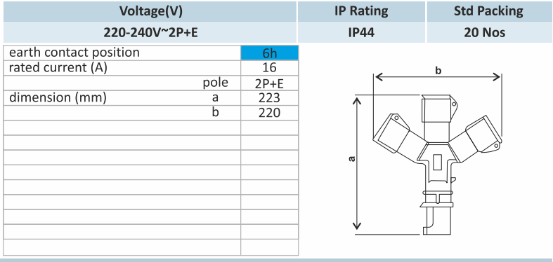 Whether you need to power machinery, tools, or electrical appliances, the 16A 3 Pin 3 Way Socket offers a practical and cost-effective solution for industrial connectivity. Its ergonomic design makes installation and operation simple, while its sturdy build quality guarantees dependable performance over time.