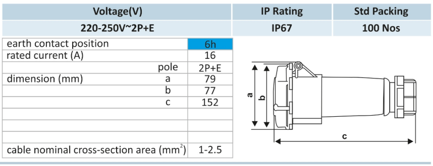 With a 16A current rating, this connector is ideal for supplying power to medium-duty equipment and machinery that require continuous, reliable electricity. From power tools and lighting systems to small production equipment, this connector guarantees stable performance without overheating or power loss.